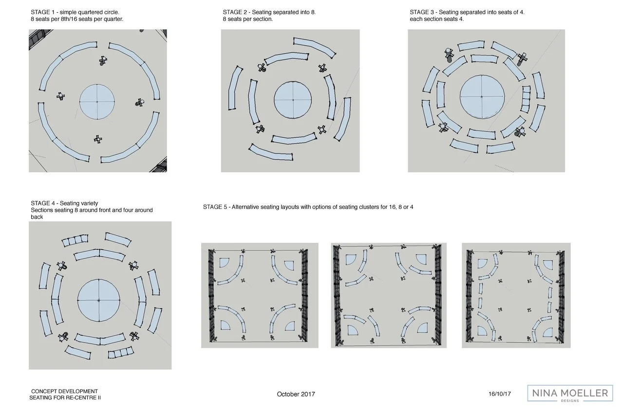 The key to our new bench seating design is flexibility, the seating can be set up to suit the various types of events to be held at this venue. The design of the CURVE Bench itself was developed over a serious of prototypes, always bearing the circle - loop - band theme in mind.